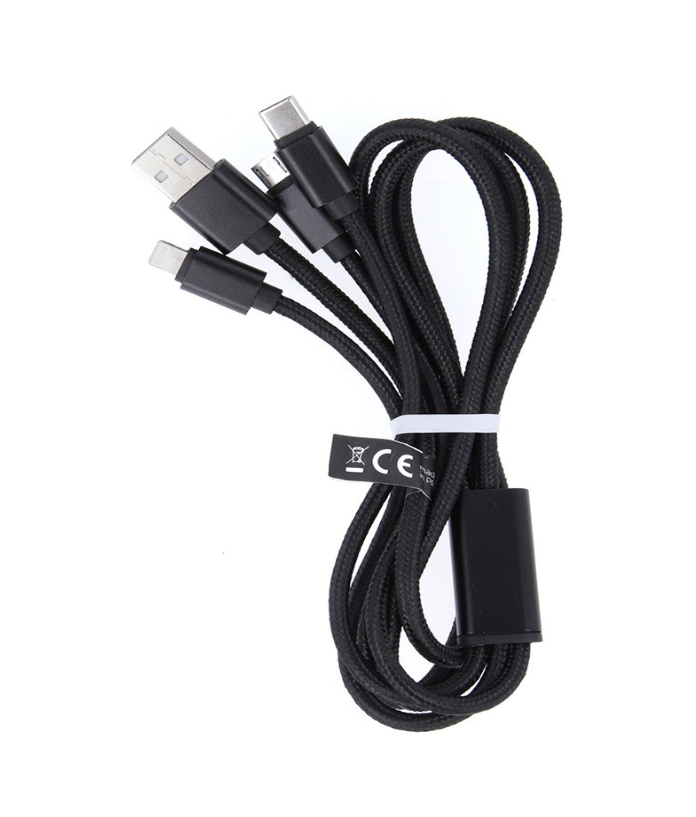 USB – kabel multi Lightning + 2x USB-C zwart 66W